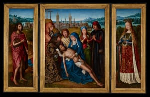With extraordinary anatomical precision, this sculpture focuses on the suffering of Christ, who is shown still alive and in extreme physical pain. Ivory was the material of choice for depictions of Jesus, not merely because it was an exotic material imported at great expense from southern Africa, but also because at this time the elephant was interpreted as a symbol of Jesus. This figure was carved out of an unusually large tusk of ivory, which determined the C-shaped movement that underscores the body’s suffering. The name of the Spanish artist who carved this work is unknown, but he carved at least two other sculptures of Christ on the Cross that we know of. One is in a museum in Florence, Italy. Another is still today in the church of Santa María in Guadalcanal, a village north of Seville, Spain. source: artsmia.org