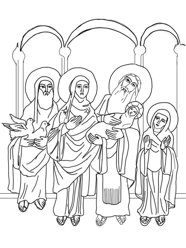 Presentation in the Temple Coptic Icon (2025) by Angelo Cason Jr. - Public Domain Orthodox Icon Coloring Page