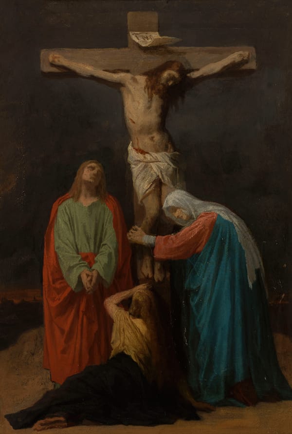Mary, the mother of Jesus, insists you look her in the eye. She has long inspired intense devotion. Christians believed that a relationship with her would bring them closer to her son, and worshippers identified with her role as a mother. Segna portrays them both as very human and approachable—Jesus plays with his doting mother’s fingers like any other baby. Yet his erect posture and serious countenance convey the wisdom and spiritual authority of the man he would become. The painting was once the central part of a five-panel altarpiece and was likely cut down in the 1800s to fit this frame. source: artsmia.org