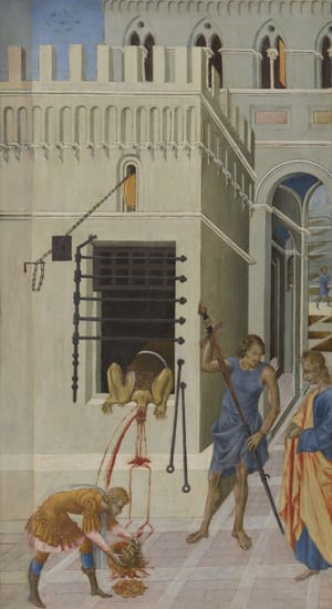 This series of panels illustrates scenes from the life of Saint John the Baptist, a prophet who foretold Jesus’s arrival as the Christian savior. The Art Institute’s collection includes six panels that were originally part of a group of 12 that possibly formed the doors of a reliquary shrine to the saint.
