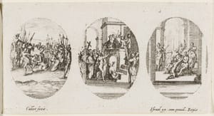 Looser and less formal than the portraits that made him famous, this work was completed shortly before Van Dyck began a six-year stint in Italy. It follows the biblical description of Jesus Christ’s betrayal in the Garden of Gethsemane. Judas, one of Jesus’ disciples, brings a band of soldiers and religious officers with lanterns, torches, and weapons to arrest Jesus, whom Judas identifies with a kiss.