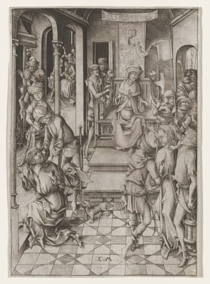 Figuring Jesus would be worn down after 40 days and 40 nights of fasting, Satan tempts him three times (Matthew 4:1-11). Eagle-eyed viewers will find all three narrated here: Satan taunts Jesus to turn stones into bread to satisfy his hunger, plunge off a temple and be rescued by angels, and worship Satan on a mountain in exchange for great riches. source: artsmia.org